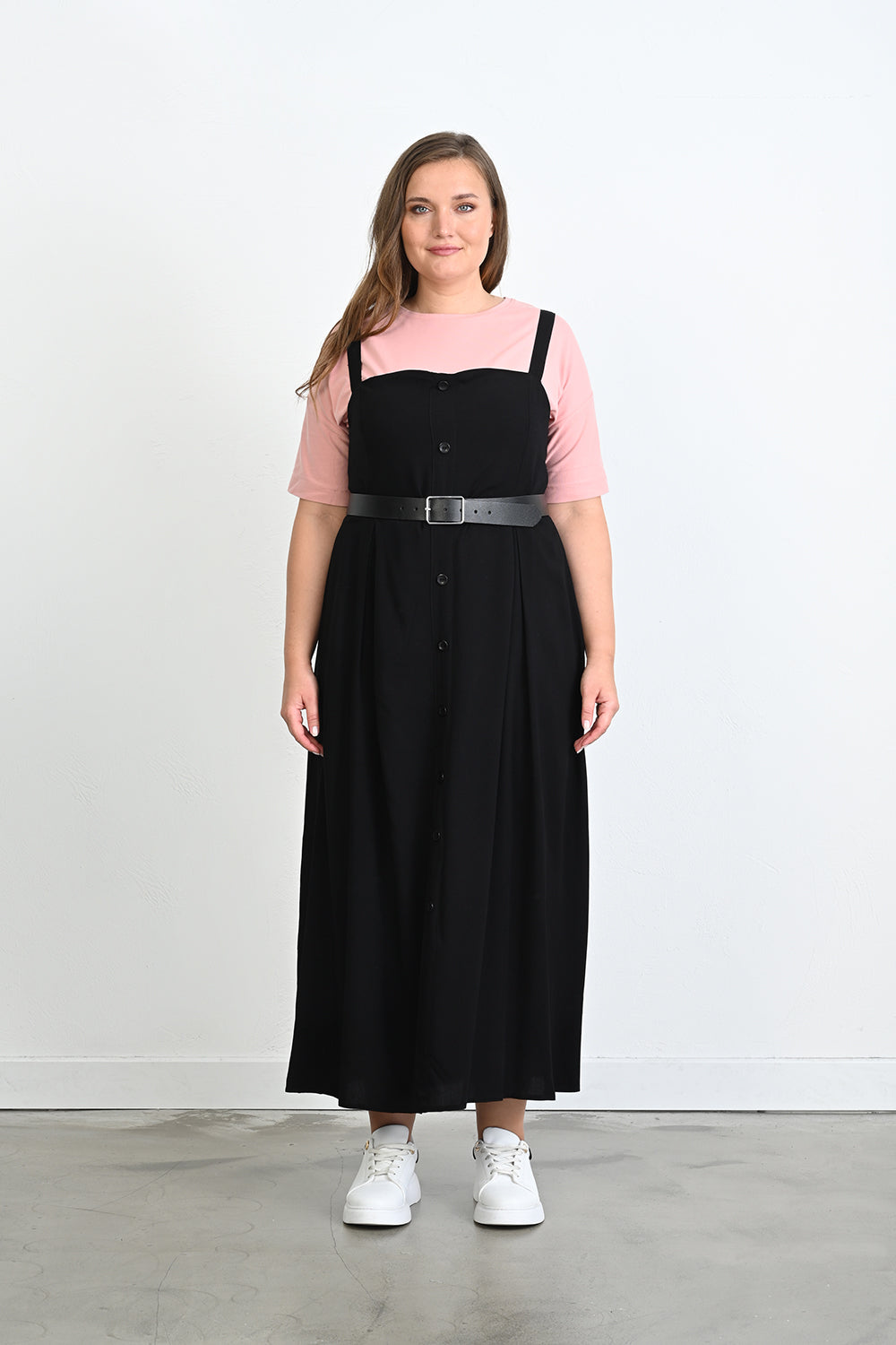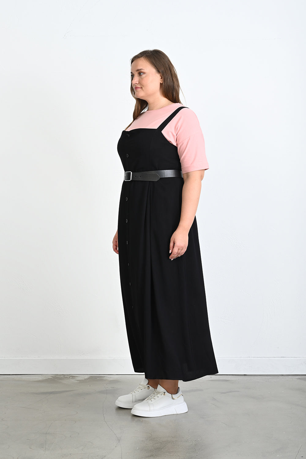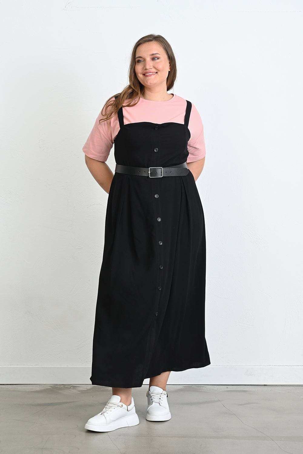 Duga haljina od viskoze s ukrasnim gumbima - Crna