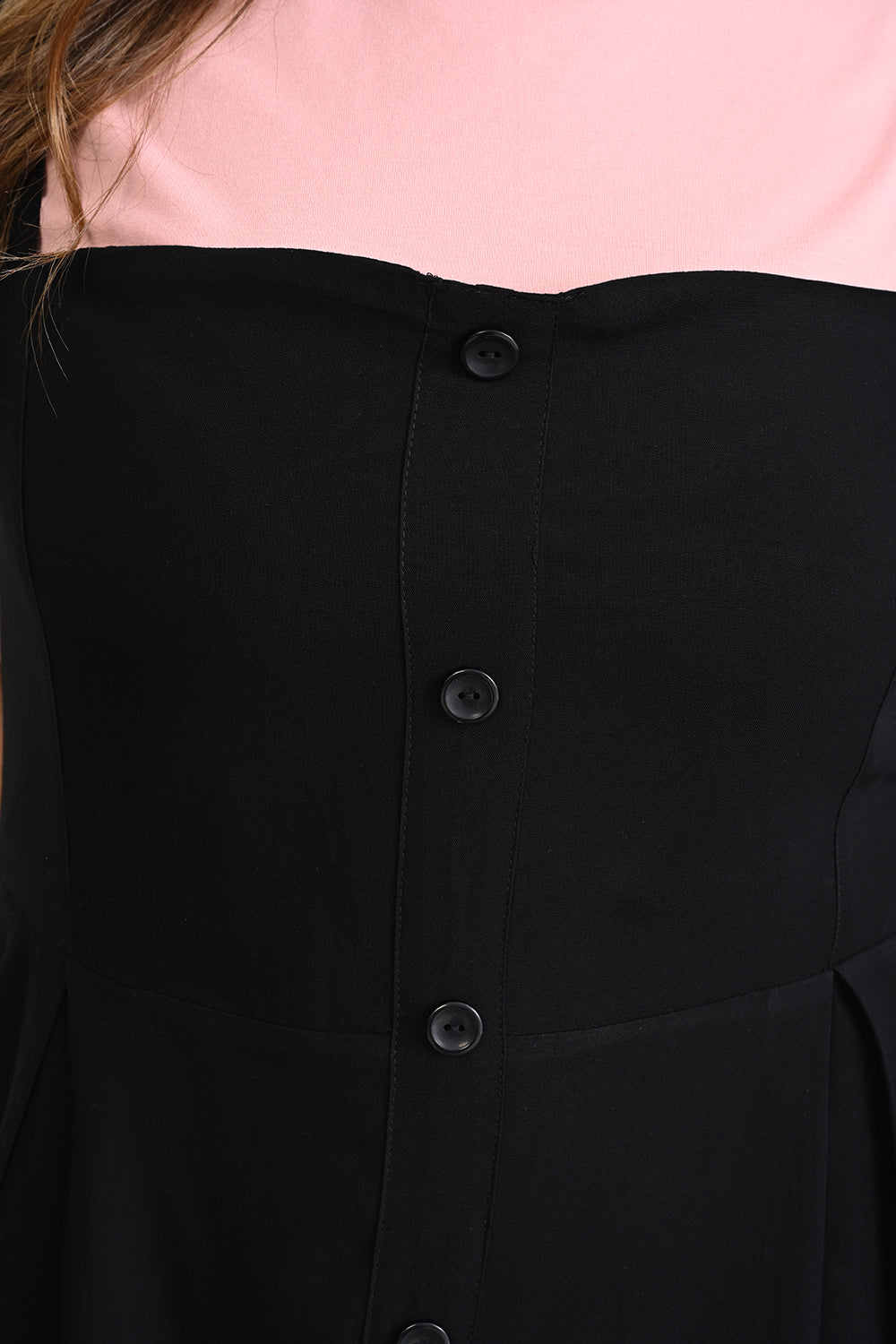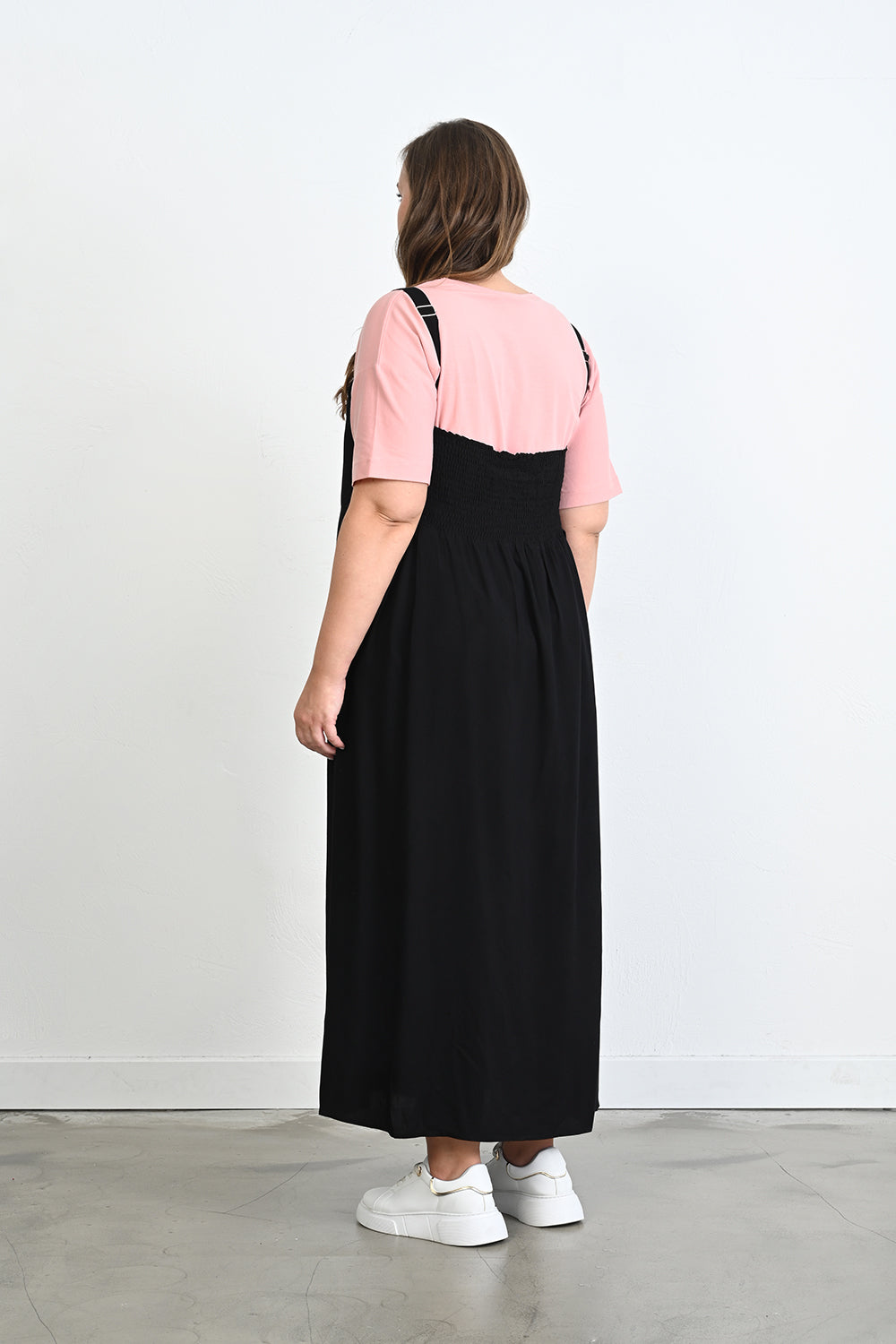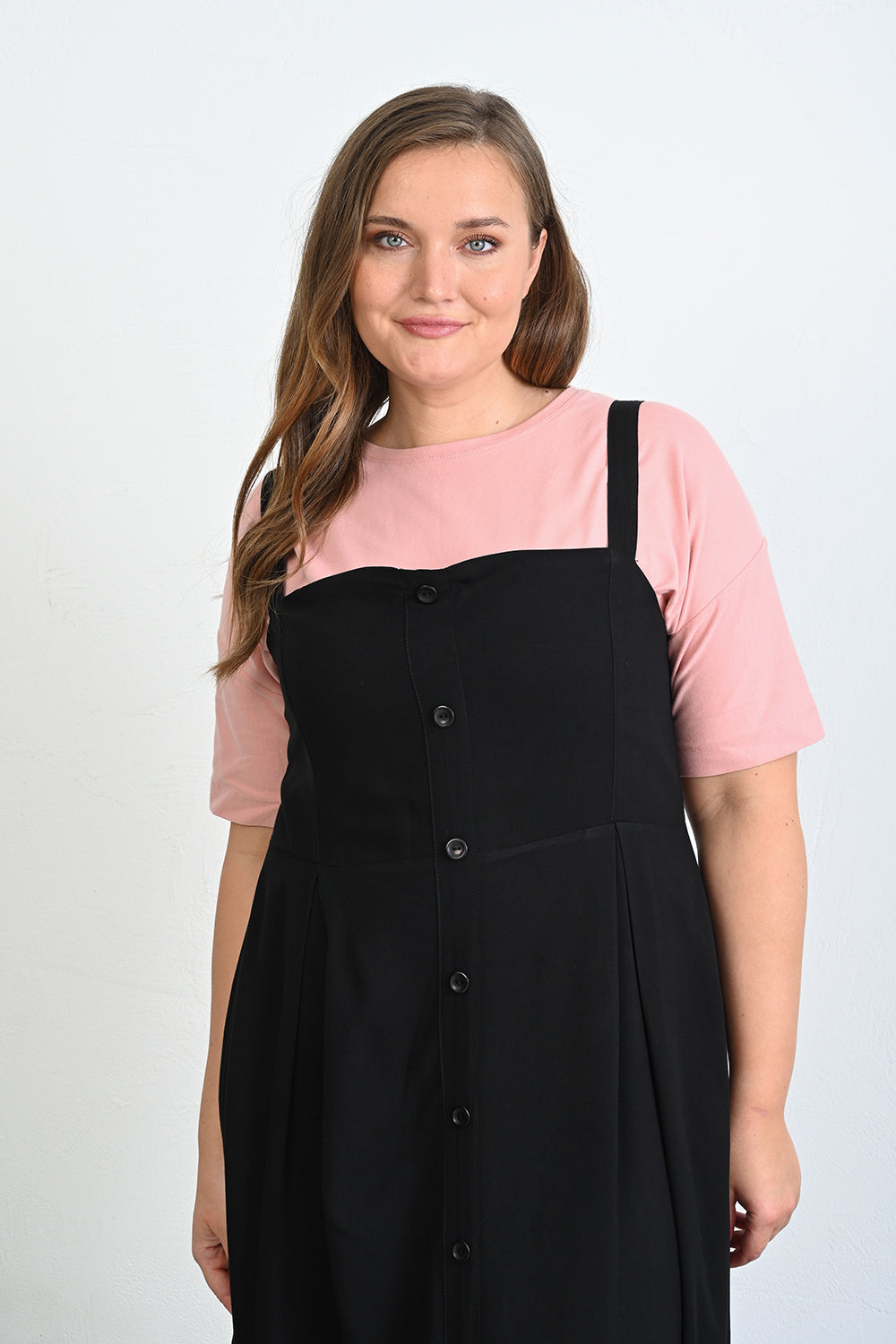 Duga haljina od viskoze s ukrasnim gumbima - Crna
