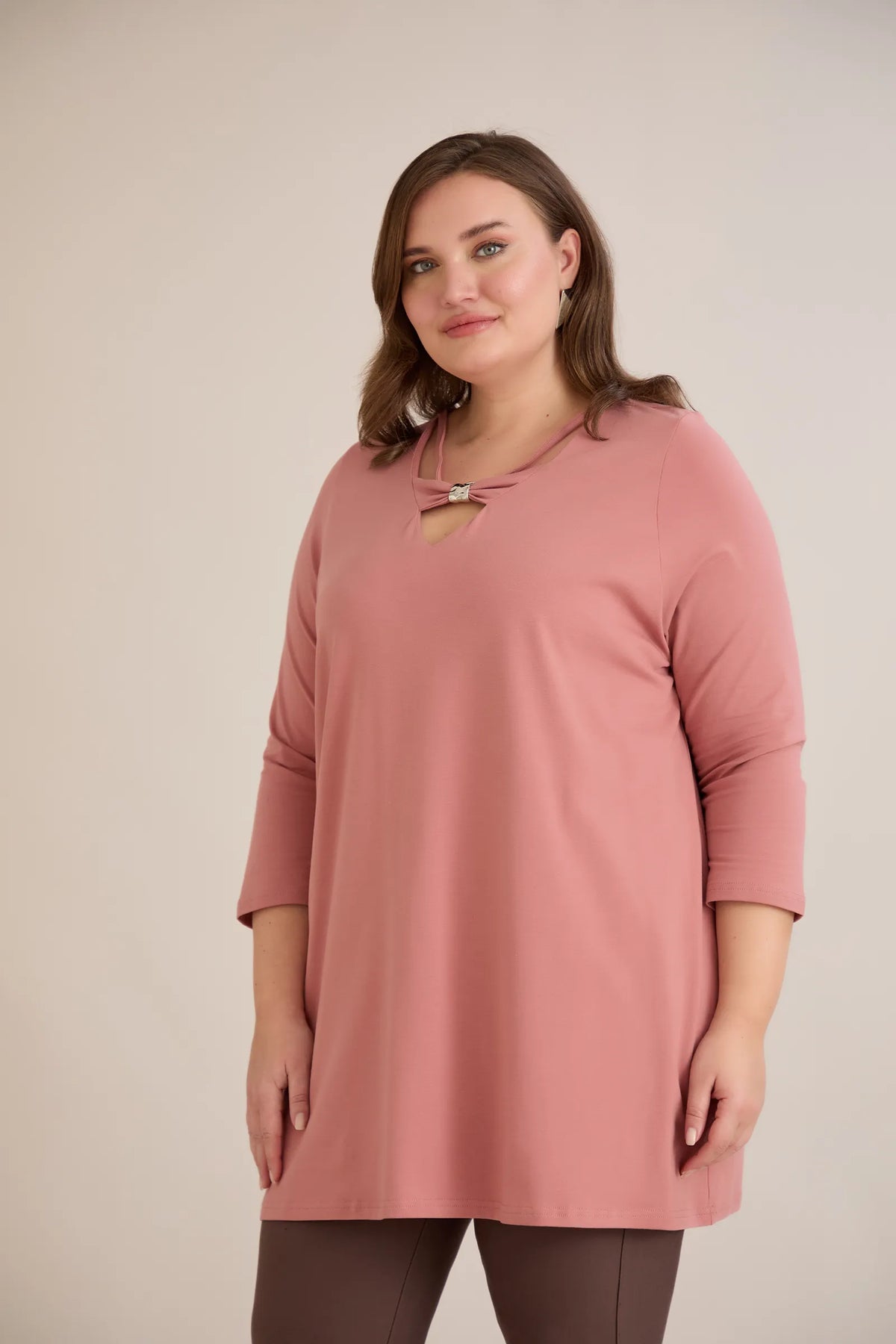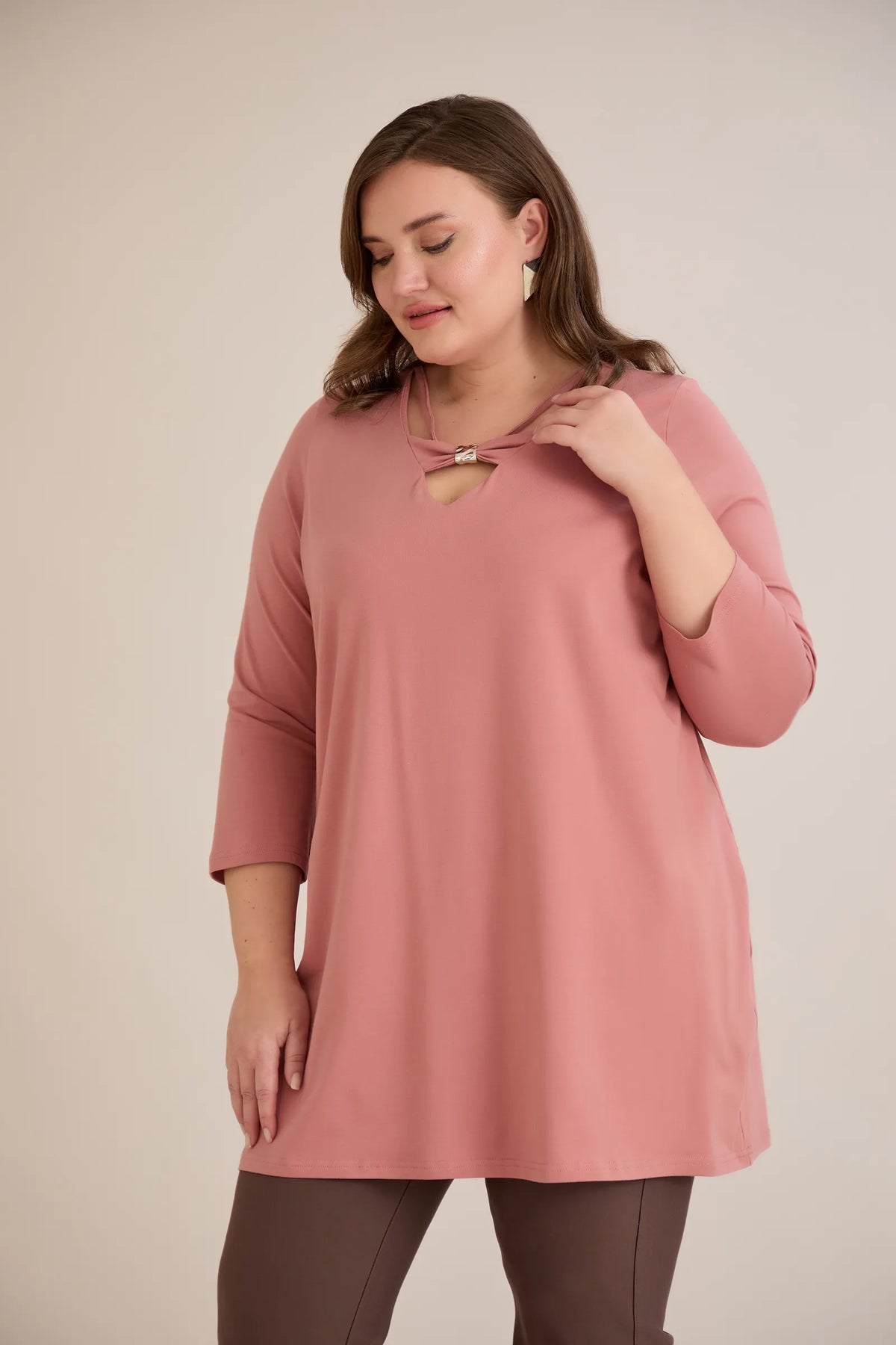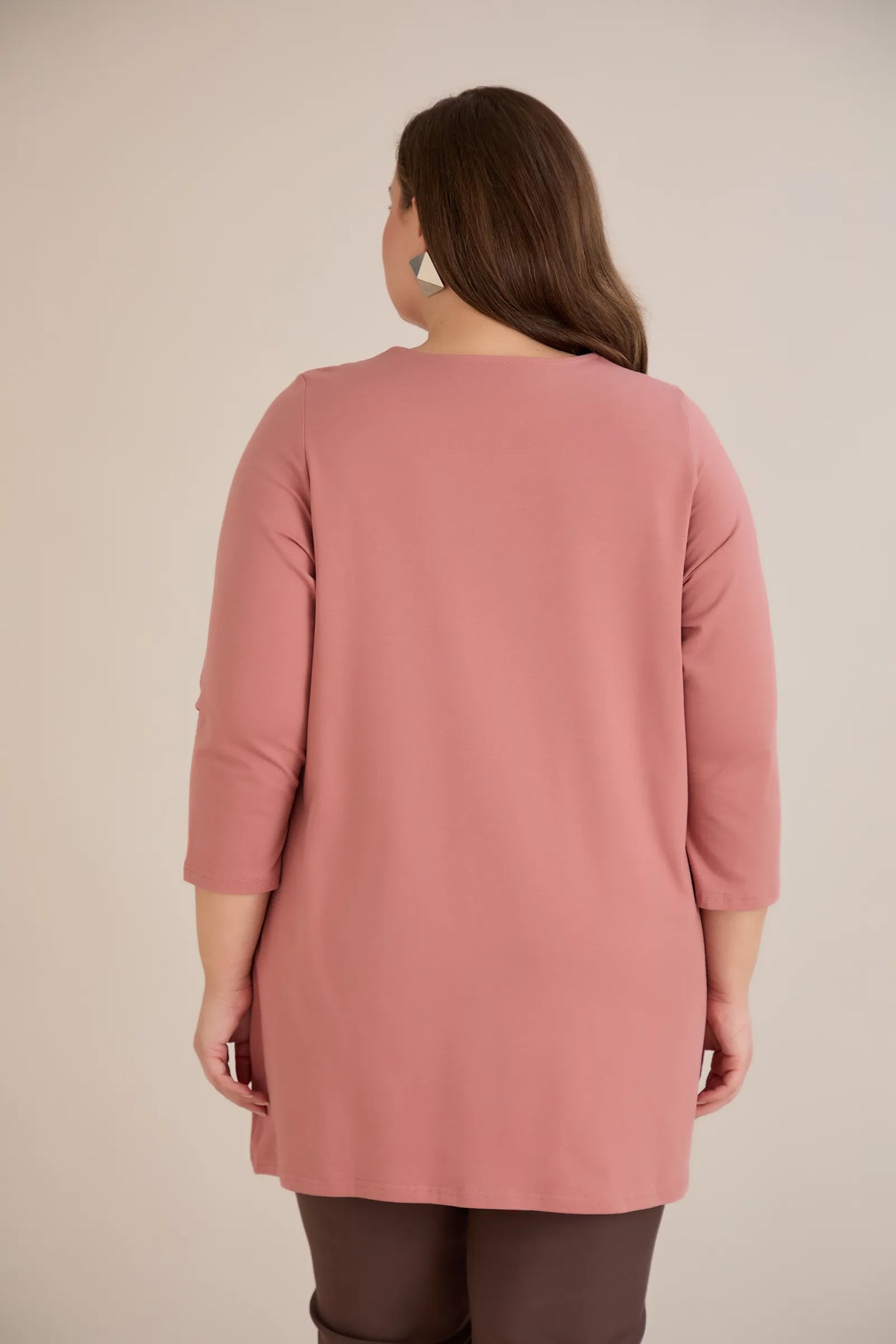 Pamučna tunika 7/8 rukava s detaljem – breskva