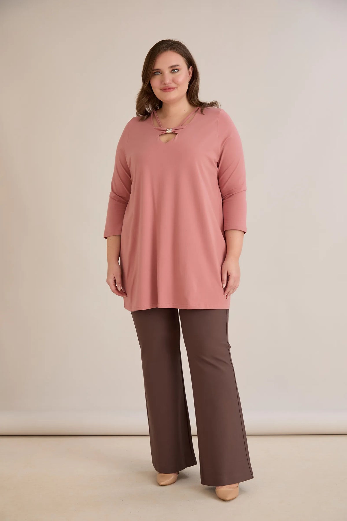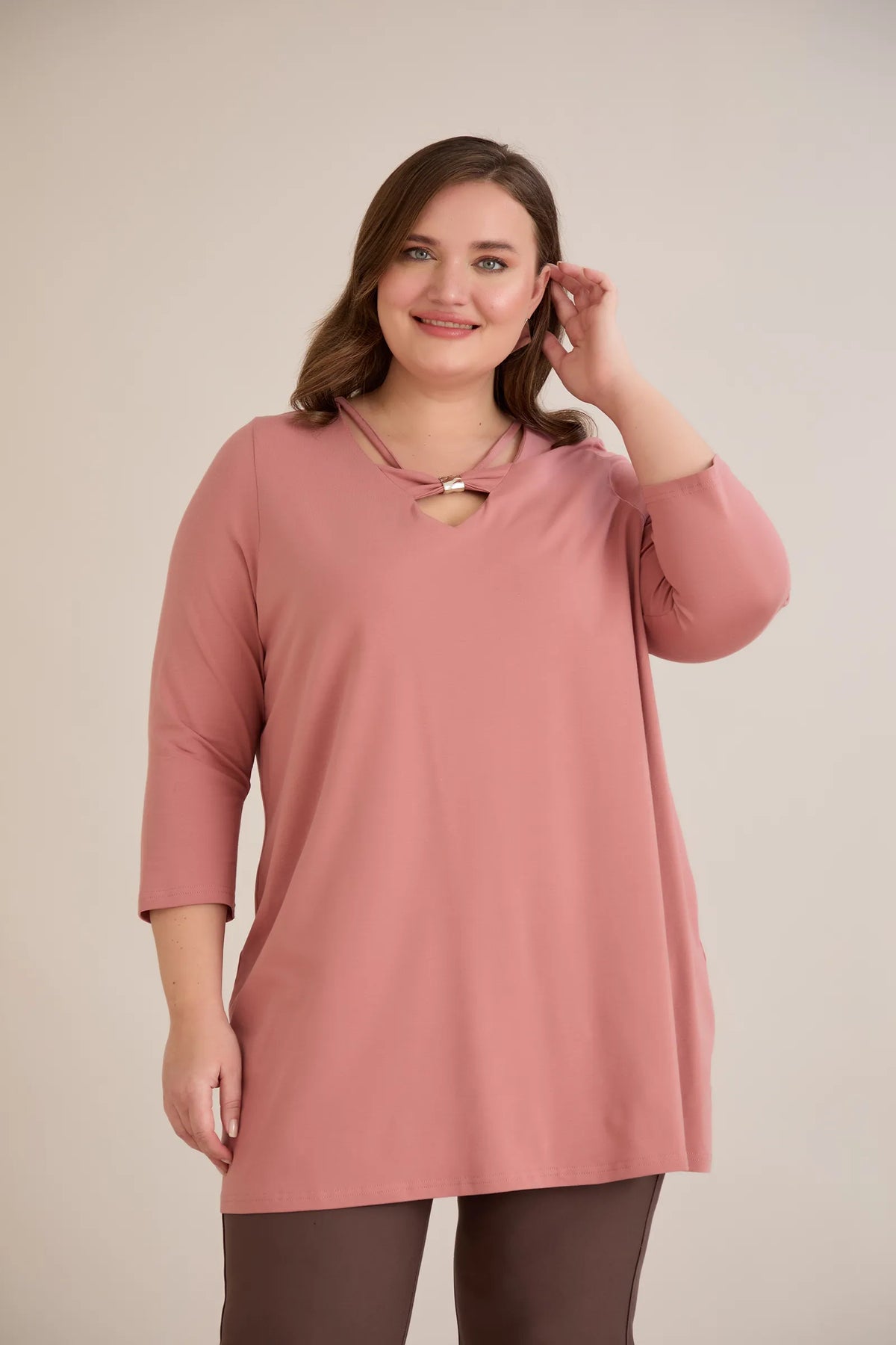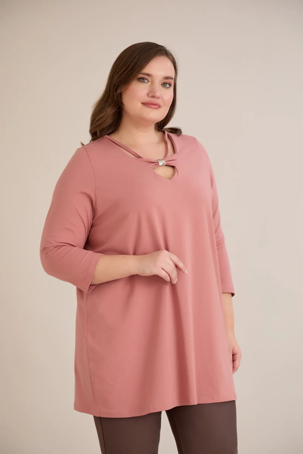 Pamučna tunika 7/8 rukava s detaljem – breskva