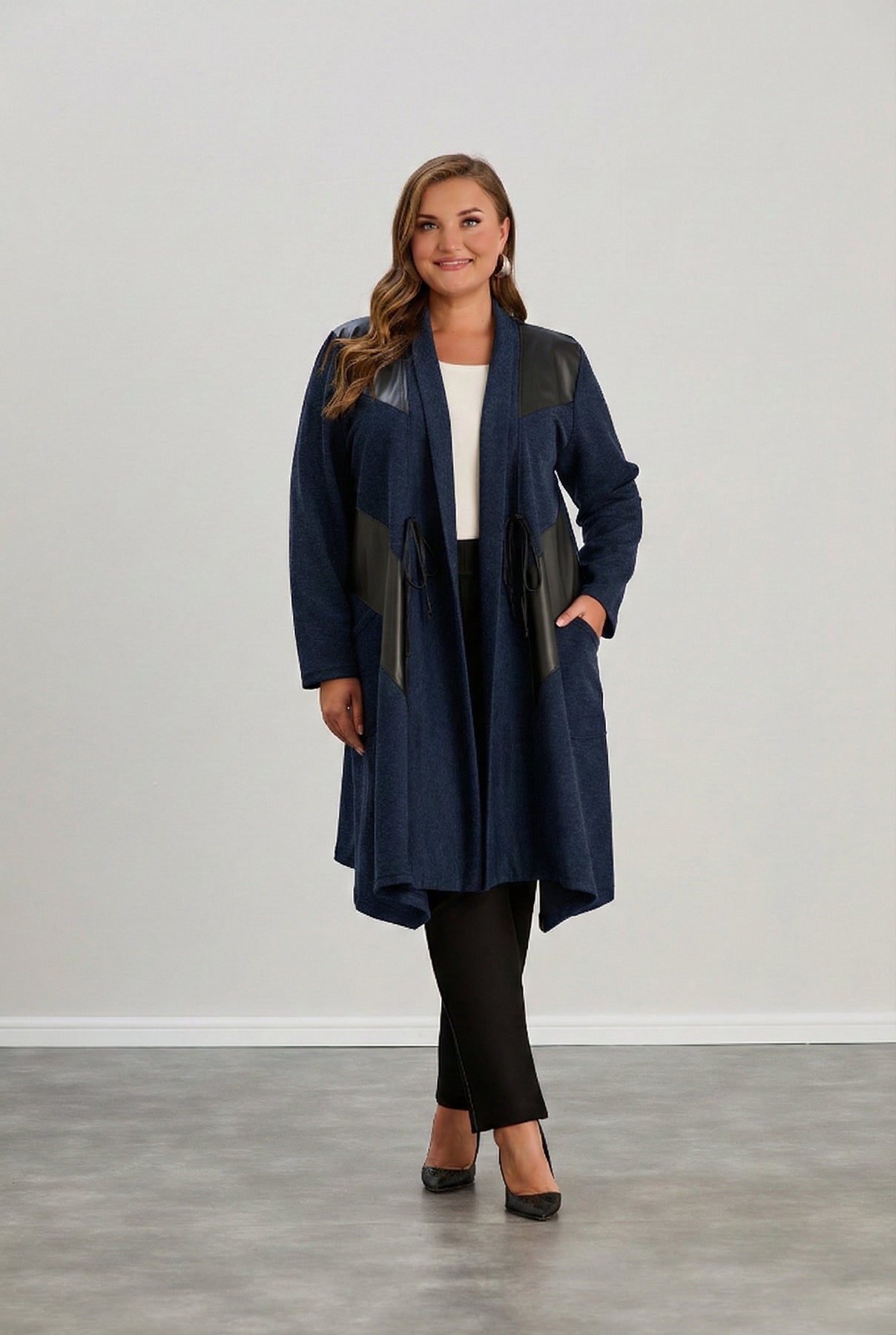Dugi kardigan s eko-kožnim detaljima - Tamno plava