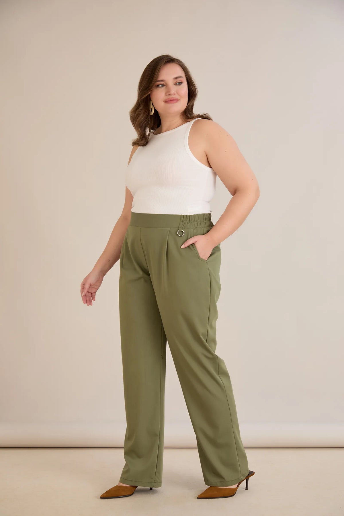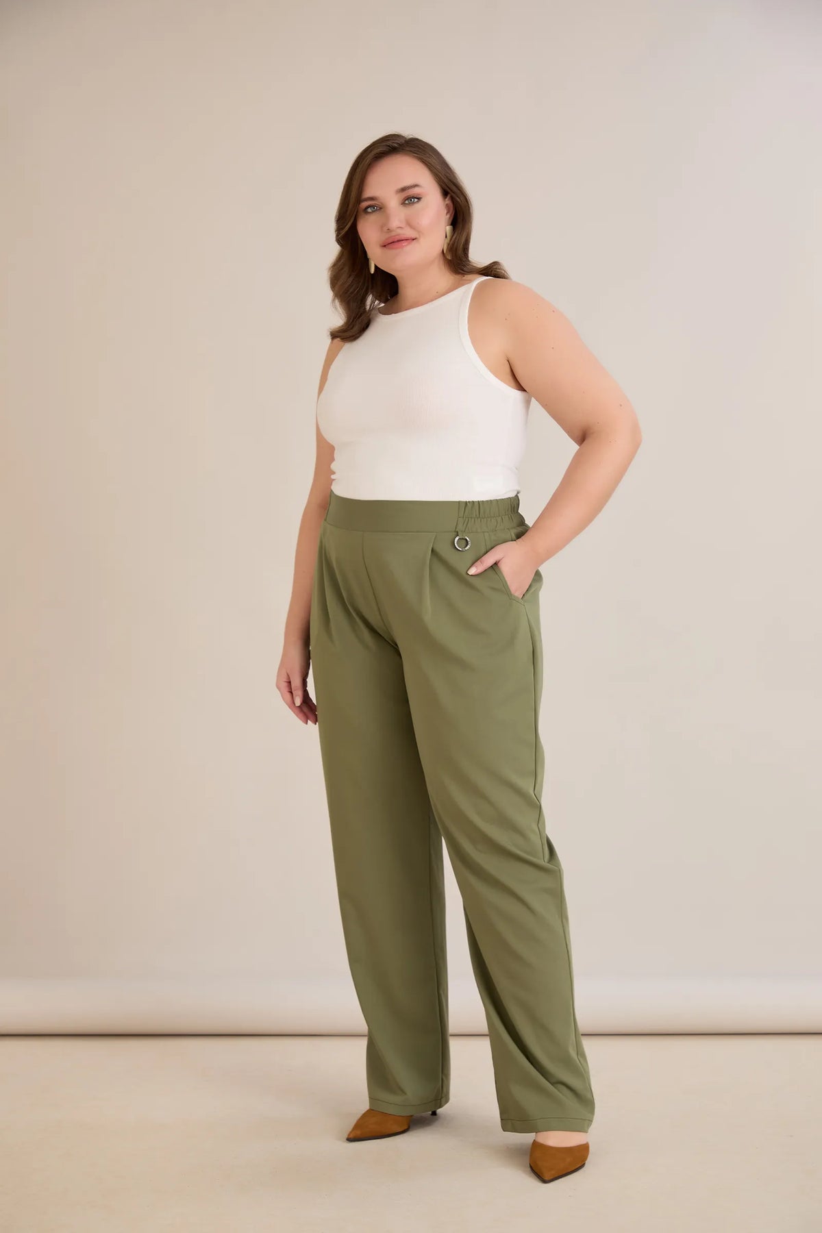 Široke ljetne elastične hlače s pamukom – maslinaste