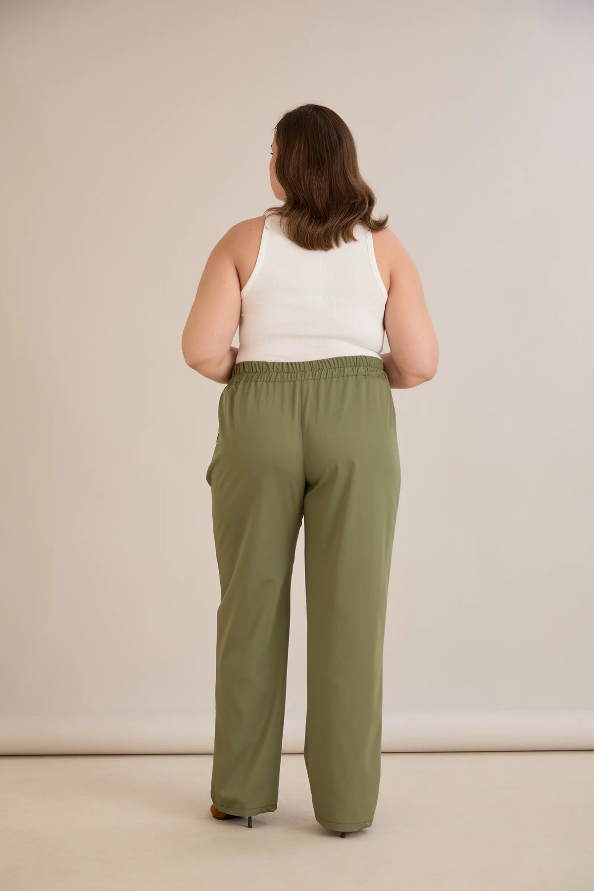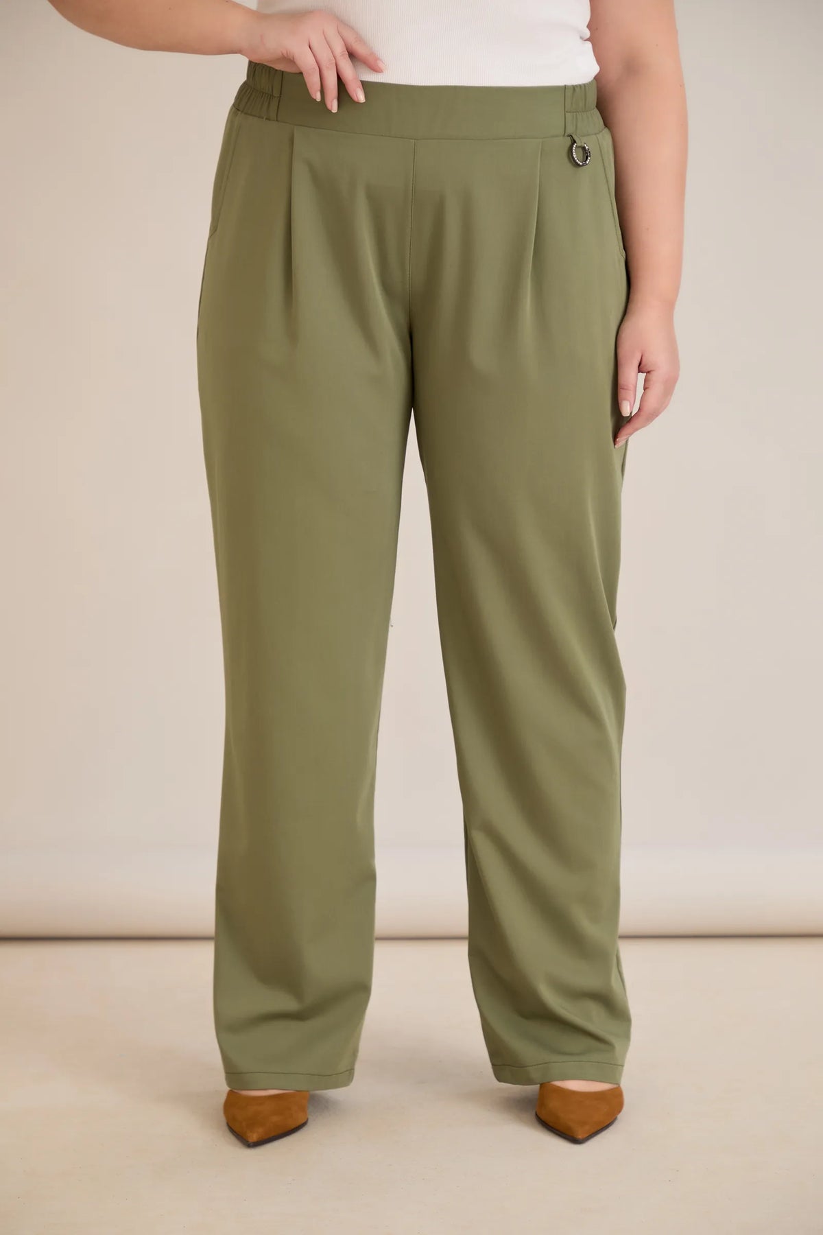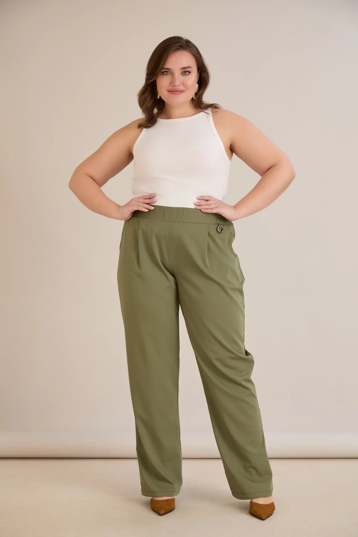 Široke ljetne elastične hlače s pamukom – Maslinasta