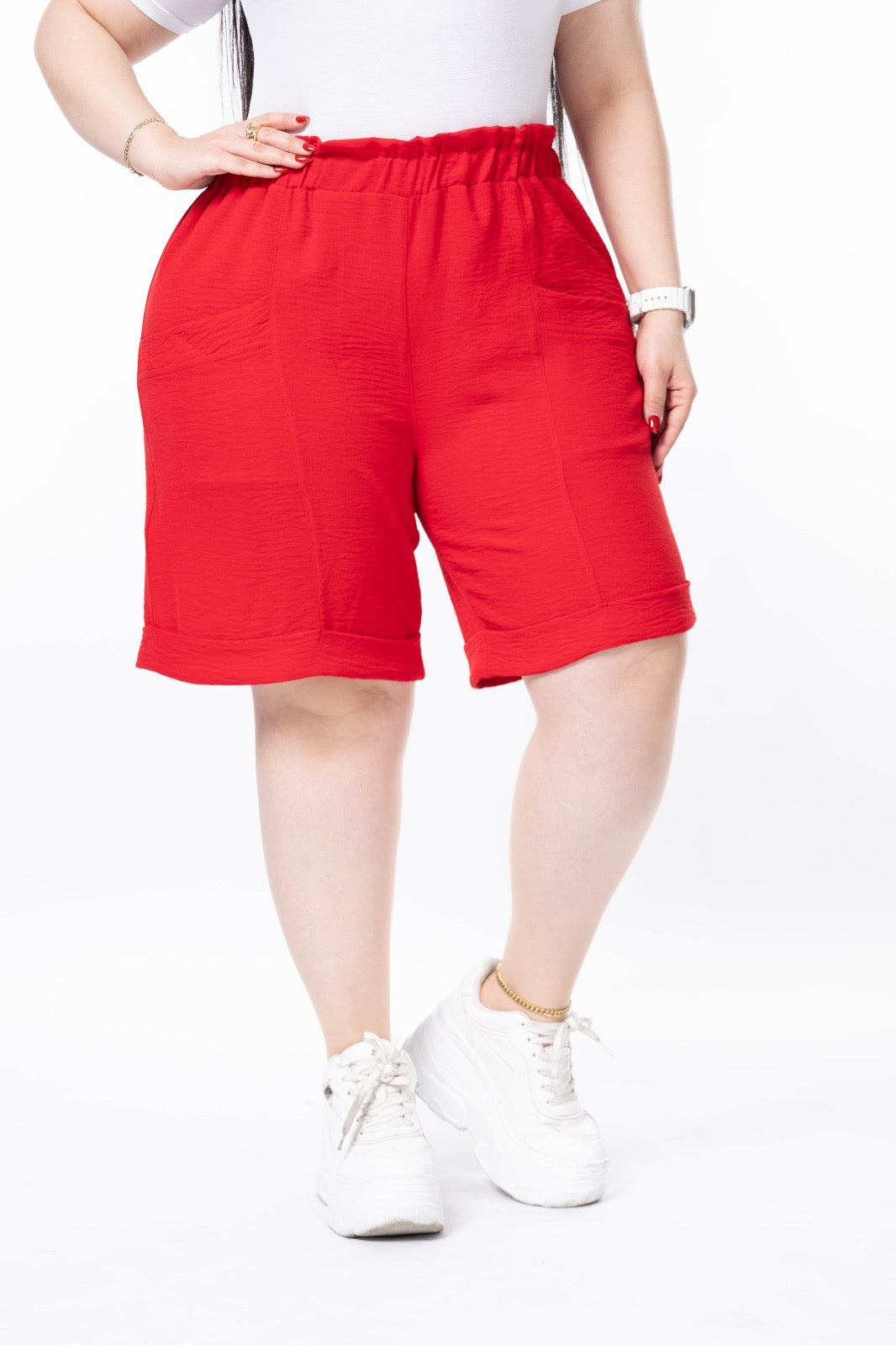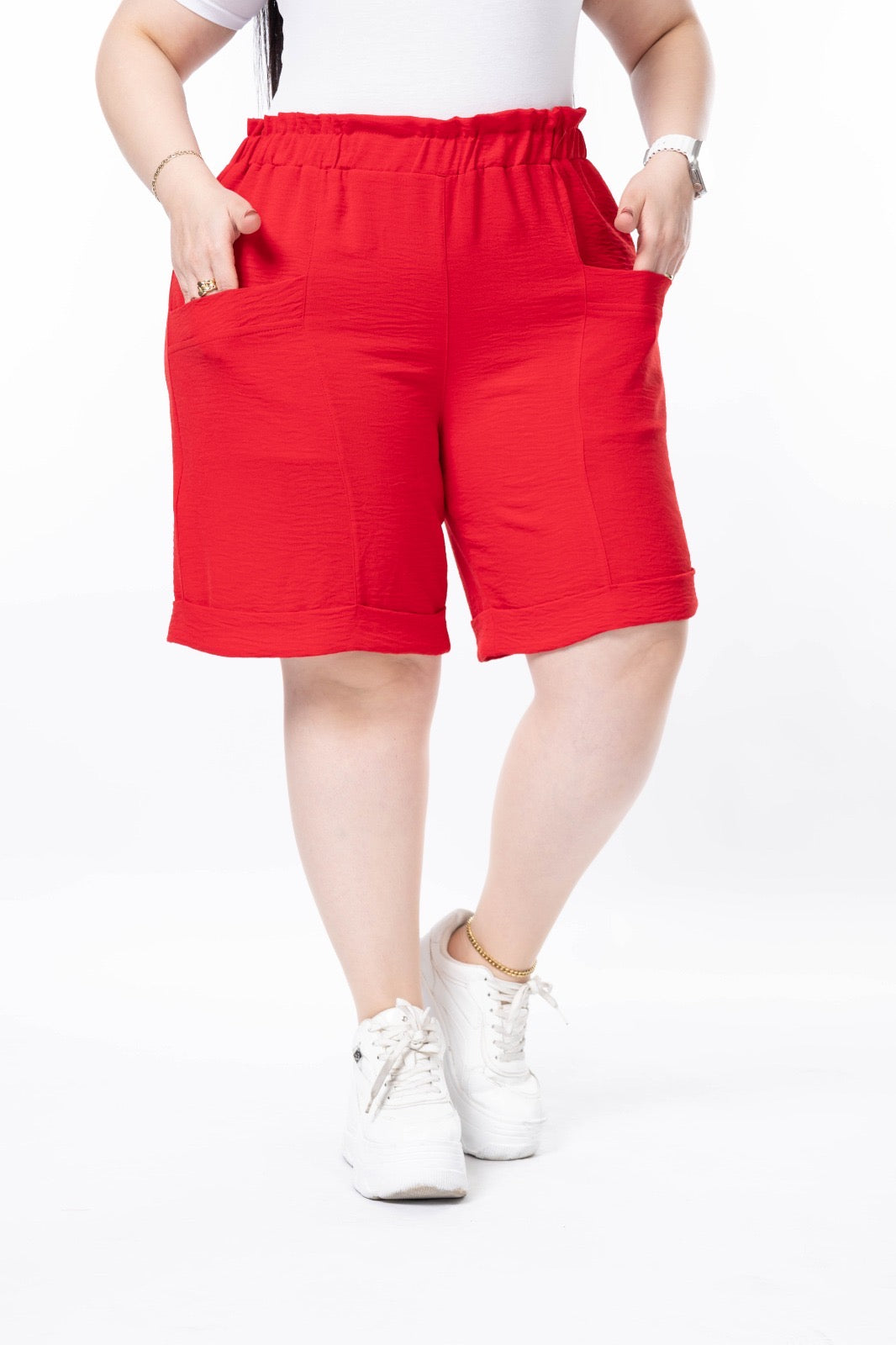 Kratke hlačice u velikim veličinama s manšetom - Crvena