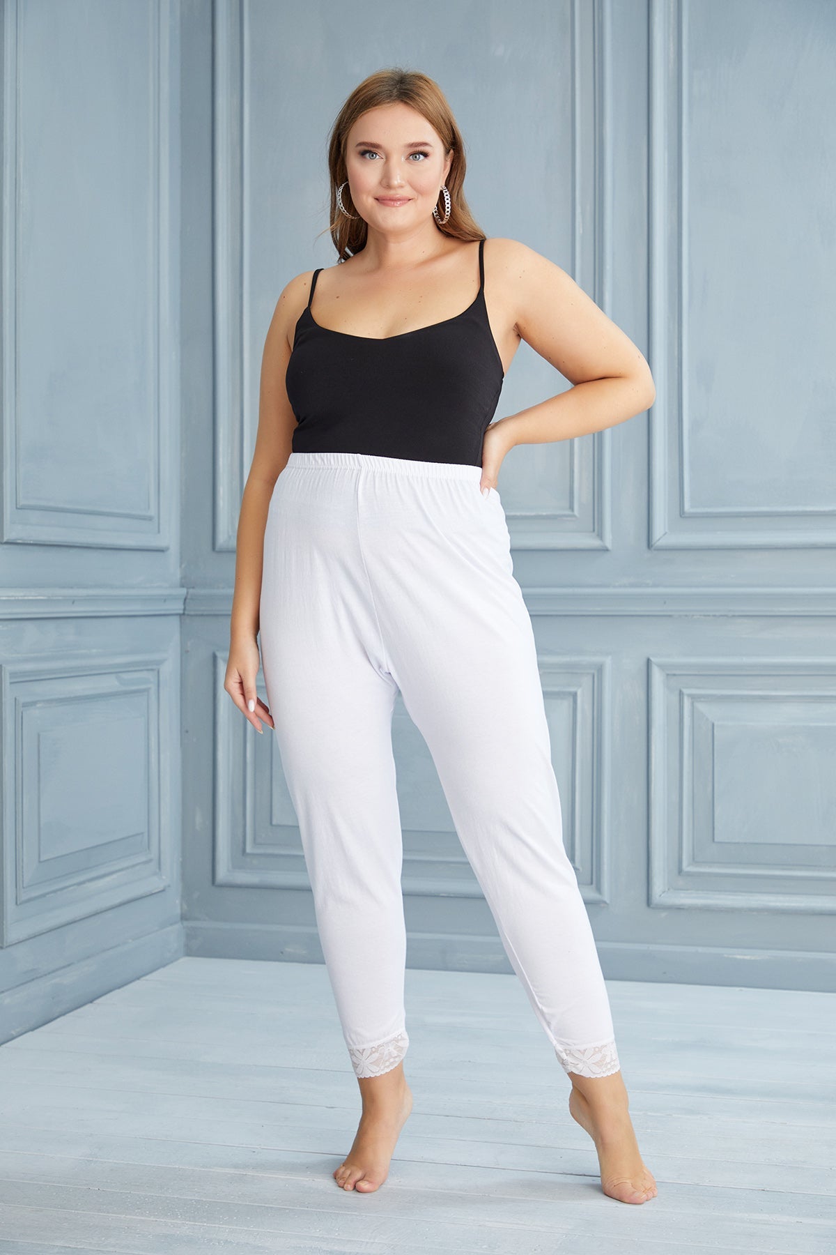 Pamučne hlače s čipkom do 150 cm bokova - Bijele
