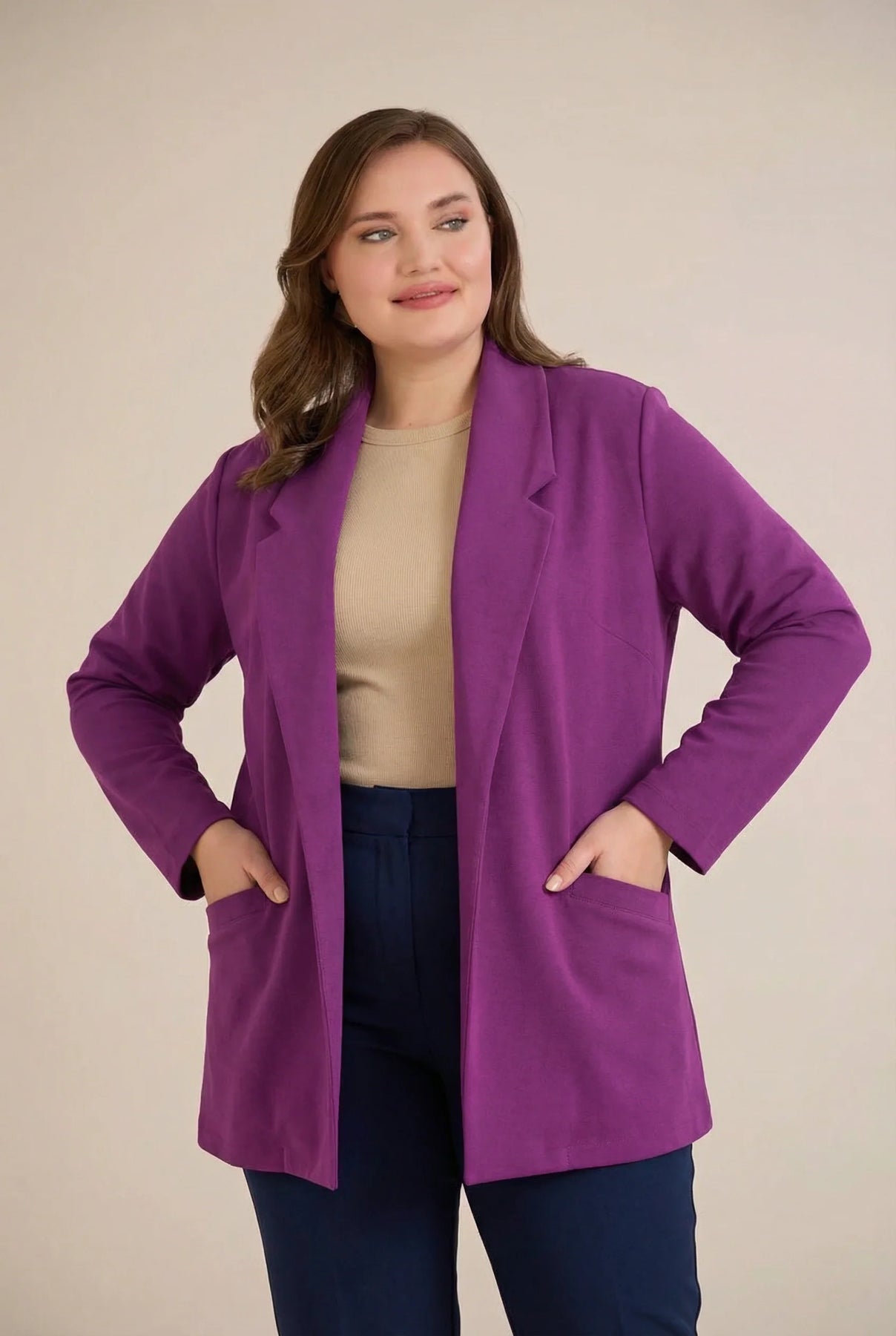 Sportsko-elegantni blejzer bez kopčanja – fuksija | veće veličine