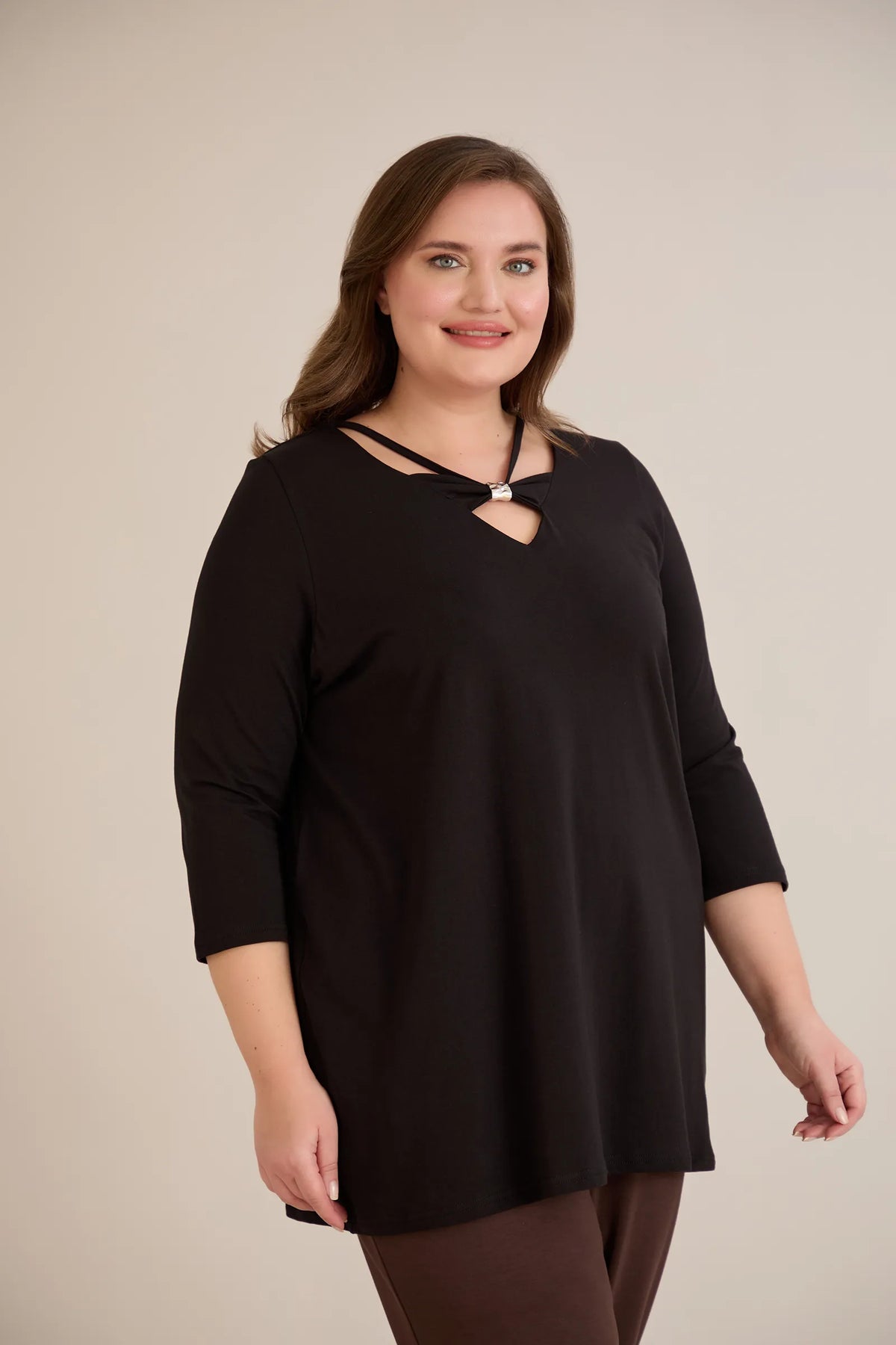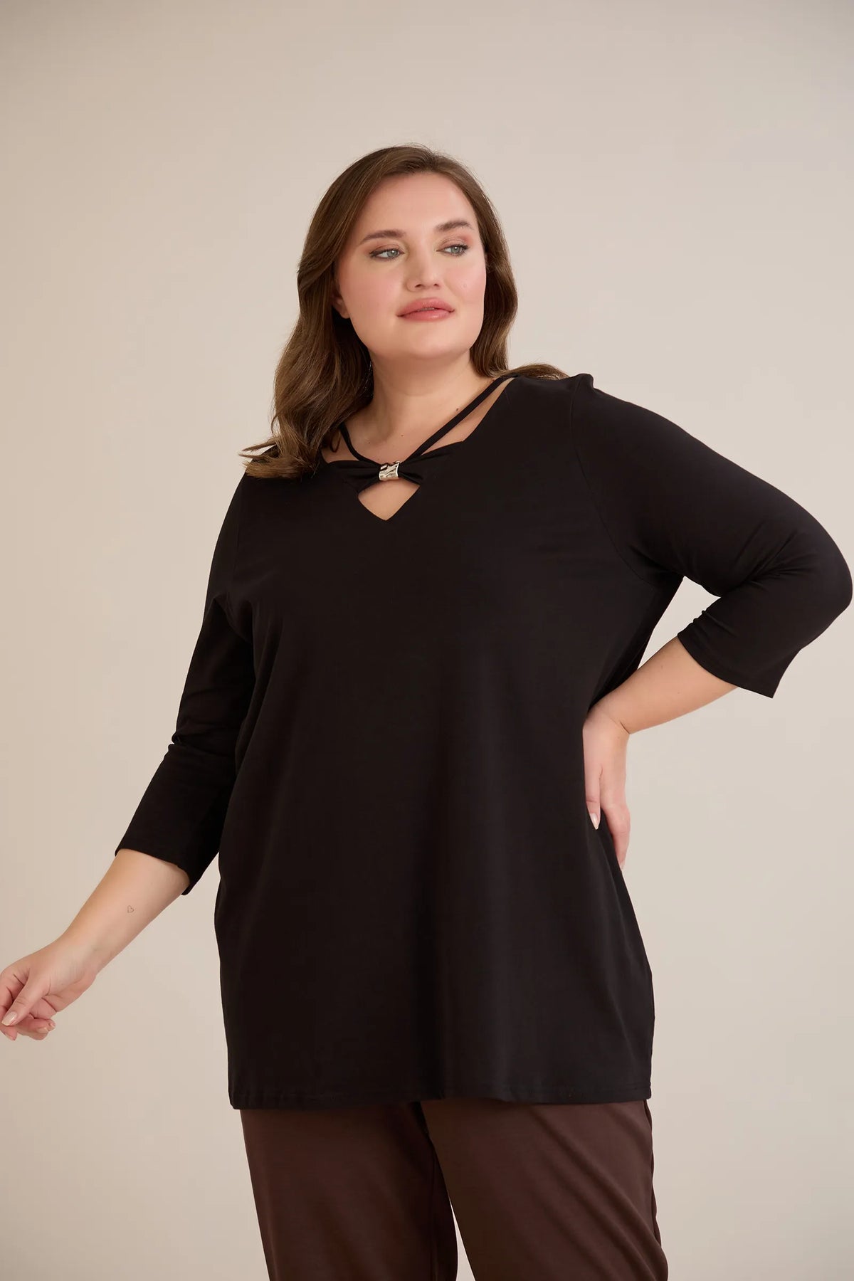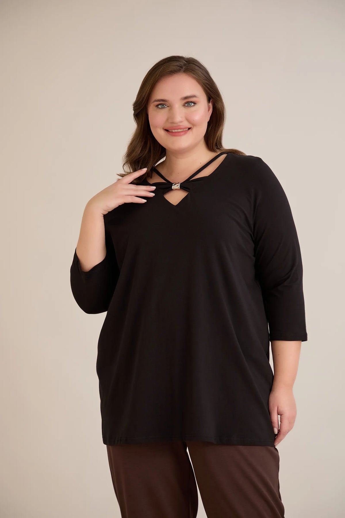 Pamučna tunika s 7/8 rukavima s detaljem | veće veličine
